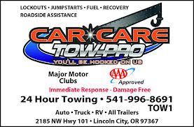 Call us 24 hours a day at 541-996-8691 at Car Care Tow Pro Inc.